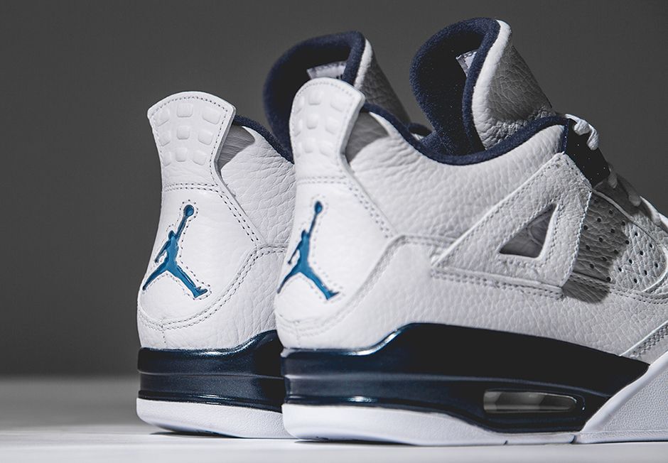 This Air Jordan 4 remastered edition of the “Columbia” has been dubbed, “Legend Blue” features a full tumbled leather upper with perforations in place of the mesh netting as well as Midnight Navy Blue accents and Legend Blue Jumpman logos on the tongue, insoles, and back heel.